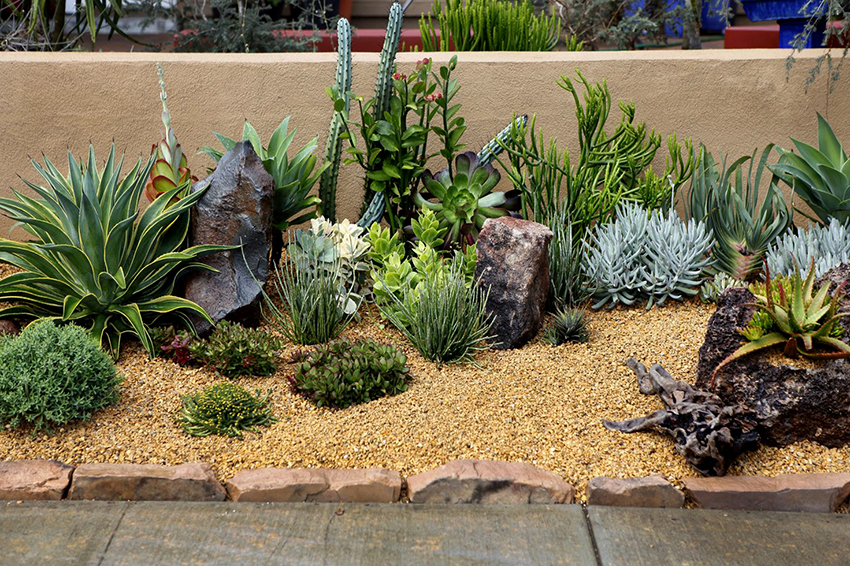 Quartzite memantulkan cahaya, kerana ini, permukaannya bersinar dan berkilau di bawah sinar matahari. Palet yang kaya membolehkan mineral digunakan secara meluas dalam reka bentuk landskap. Basalt tahan lama sering digunakan untuk mengukuhkan cerun dan membuat buatan teres.