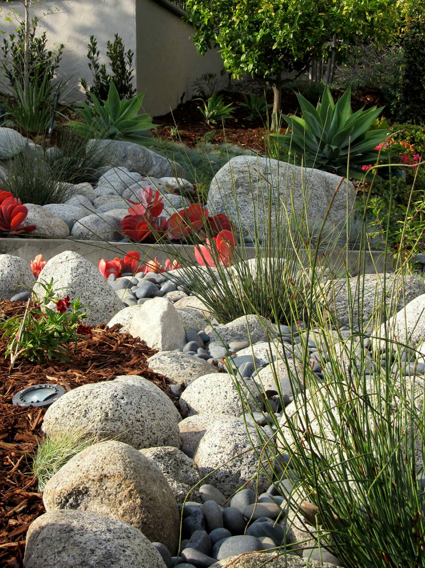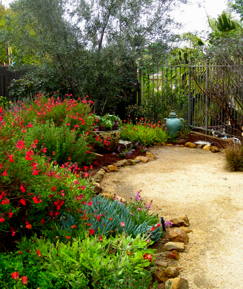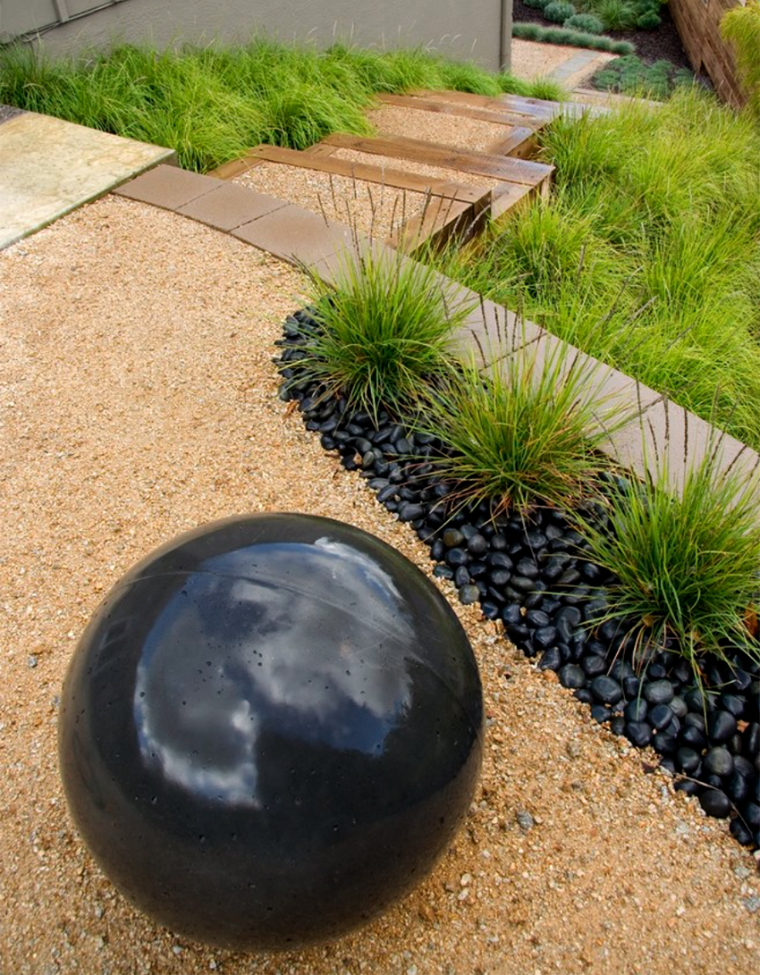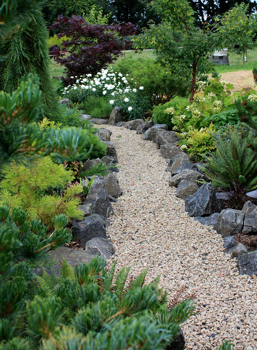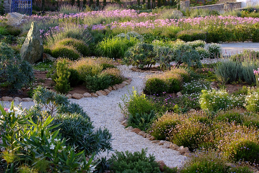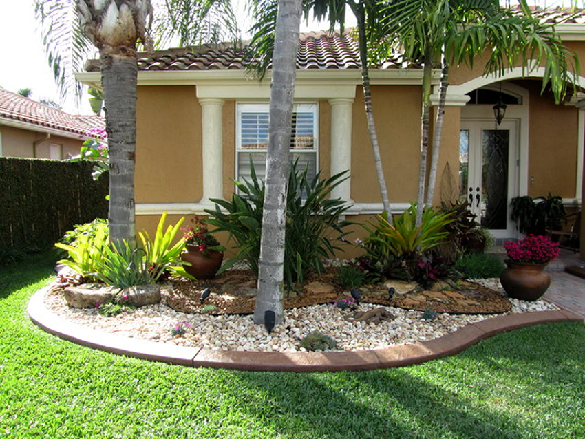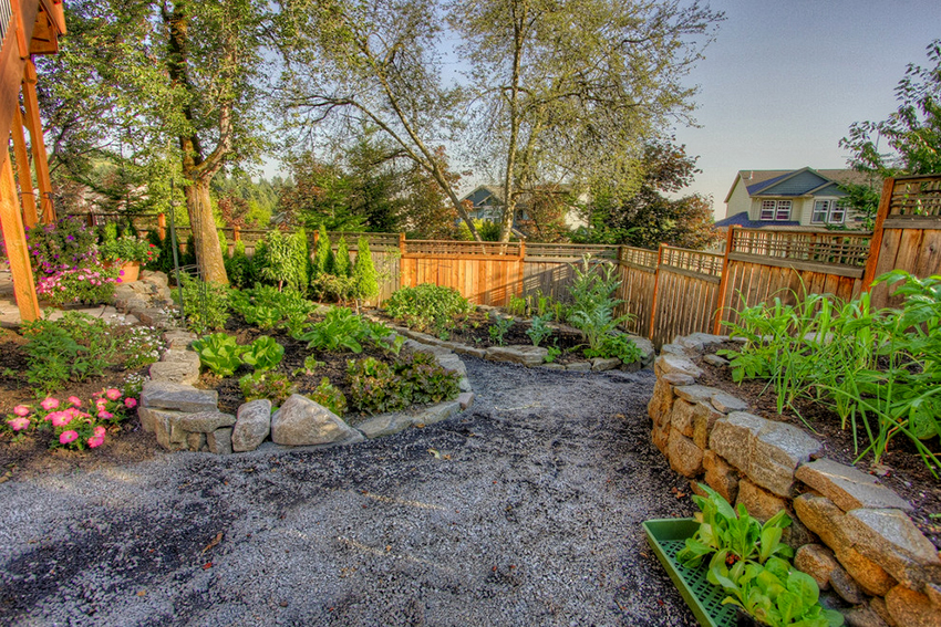 Kerikil banyak digunakan dalam hiasan taman. Penampilan yang rapi, pilihan warna yang besar dan kos rendah bukan sahaja memungkinkan untuk melindungi taman bunga, tetapi juga menjadikannya karya seni yang sebenar. Selalunya, batu kerikil digunakan untuk membuat garis besar tempat tidur bunga. Untuk memberikan kekuatan pada struktur, bahan biasanya diletakkan di atas mortar simen.