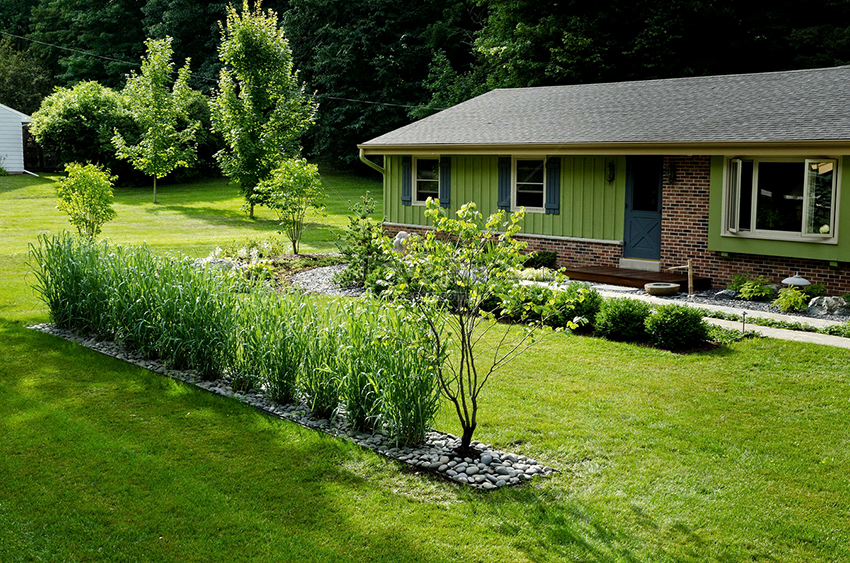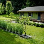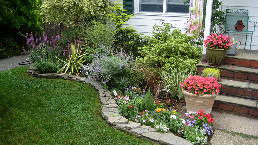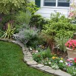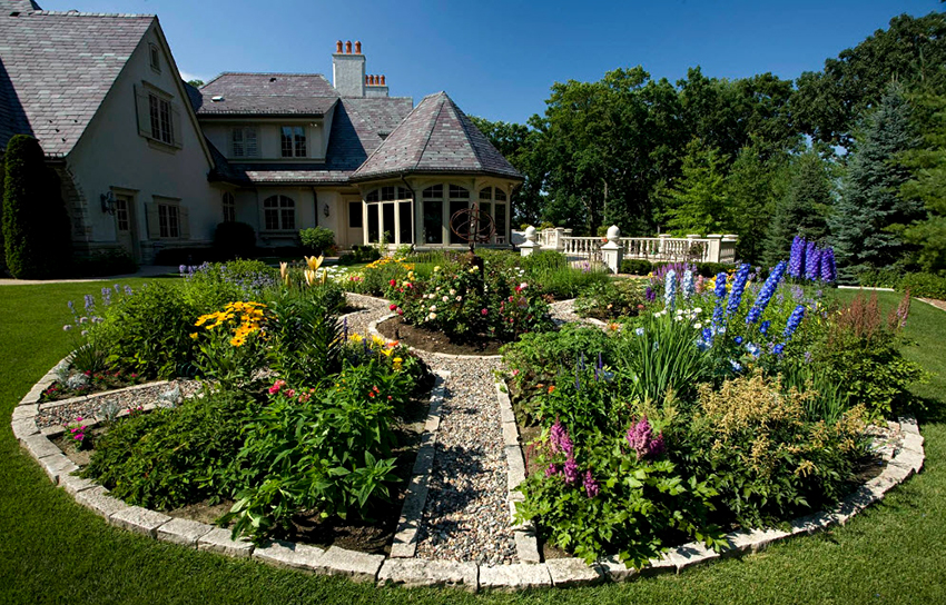 Pilihan paling mudah adalah katil bunga biasa dengan sempadan. Untuk melakukan ini, parit digali di sekitar perimeter tempat tidur bunga, dipenuhi dengan kerikil dan batu-batu yang lebih besar dipasang di atas, menekannya sedikit ke tanah.