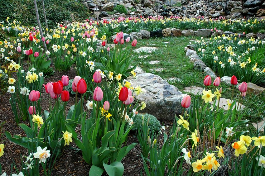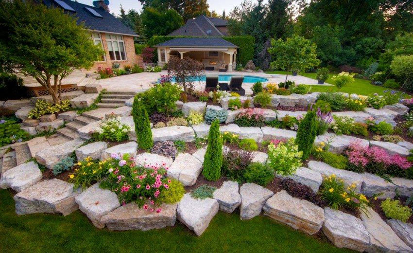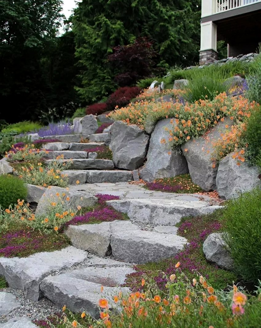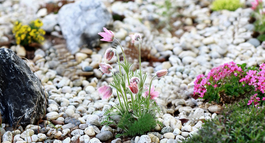 Taman batu juga memerlukan cerun. Pertama, anda perlu membuang lapisan tanah subur atas, memadatkan tanah, meletakkan saliran dan taburkannya dengan tanah yang subur. Peletakan batu harus dilakukan pada musim gugur, sehingga hujan dan cuaca buruk akan membiarkannya tenggelam. Jadi slaid alpine akan memperoleh penampilan yang paling semula jadi. Penting untuk meninggalkan poket tanah di sendi batu, di mana tanaman kemudian akan ditanam.