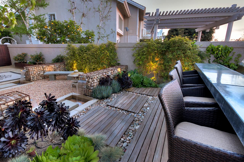 Sebuah taman batu Jepun terdiri daripada batu-batu bulat yang sering berlumut dan saling terpisah. Keunikannya adalah dominasi batu - batu dan batu kerikil. Tumbuhan ditanam, tetapi dalam jumlah yang sangat kecil.