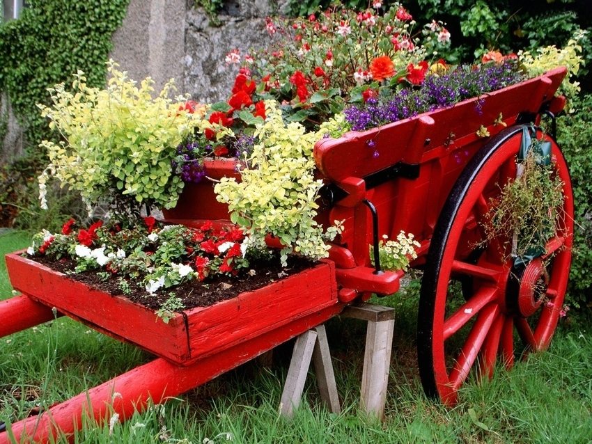 Untuk tujuan ini, mana-mana kenderaan lama yang tidak sesuai untuk tujuan penggunaannya sesuai. Sering terjadi bahawa sayang untuk membuang mereka dan mereka terbiar selama bertahun-tahun bangsal atau di garaj. Berkat imaginasi anda, perkara-perkara seperti itu boleh membawa kehidupan baru. Apa sahaja yang boleh digunakan: basikal, motosikal, kereta lama dan juga kapal.