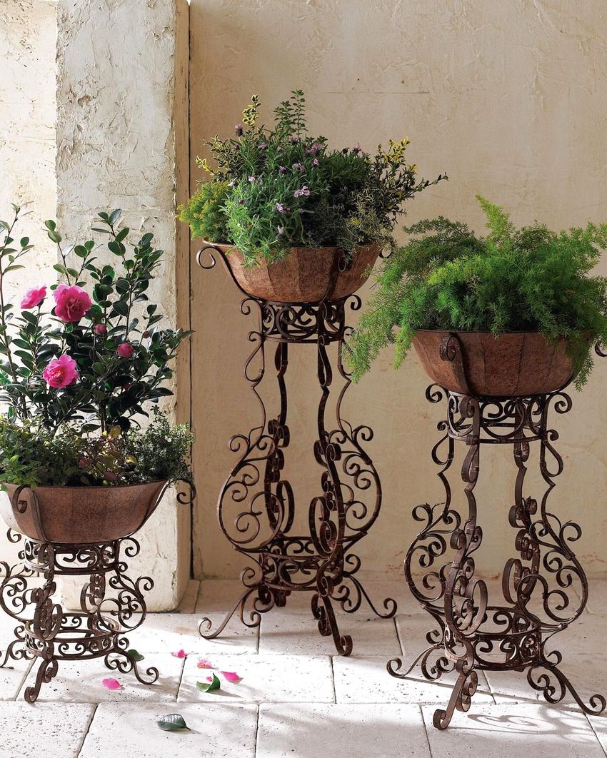 Tambahan yang jelas dari bekas yang tidak dapat dilupakan adalah keupayaan untuk menyusunnya semula dengan mudah di tempat yang mudah. Anda sentiasa boleh meletakkannya di beranda pagar atau di tangga. Ini akan membolehkan anda menghias dalaman dengan mudah pada waktu yang tepat.