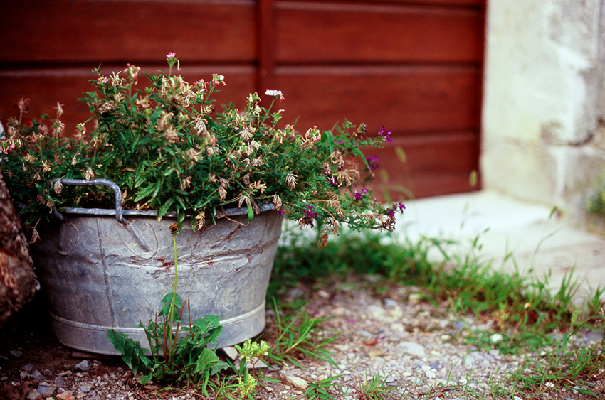 Juga, kereta mainan lama dengan ukuran yang cukup, beg kulit dan beg bimbit, kendi retak, dan lain-lain boleh menjadi asas yang baik untuk katil bunga mini.