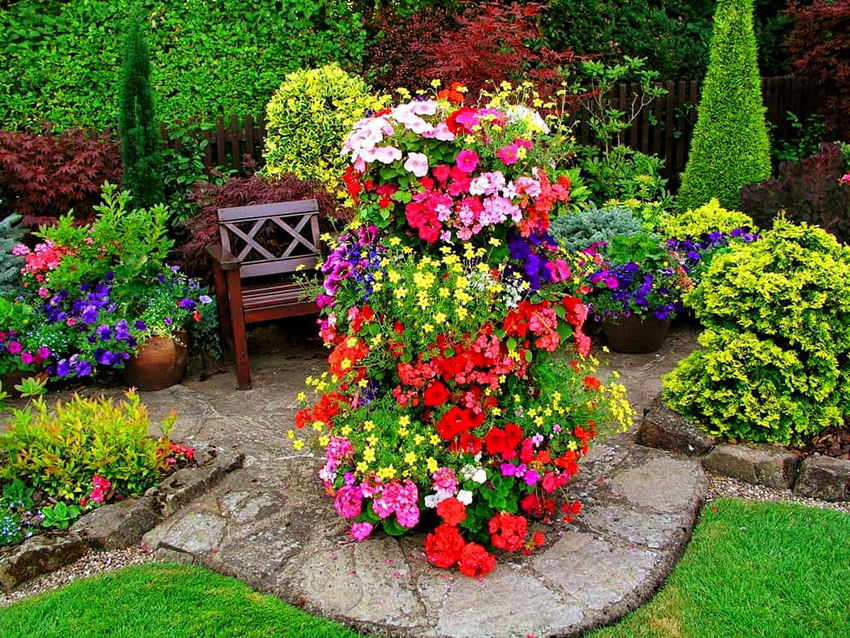 Nasihat berguna! Untuk menambah ragam bunga di tempat tidur bunga, anda boleh menambah pasu atau pot bunga dengan tanaman hiasan di dalamnya. Ini akan menambahkan daya tarikan istimewa di taman bunga anda.