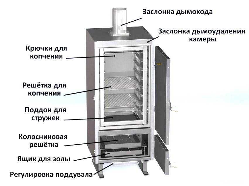 Yang terakhir digunakan untuk merokok jenis produk tertentu. Peranti sejagat yang dibeli lebih biasa. Di bilik mereka, anda boleh merokok bukan sahaja produk daging dan ikan, tetapi juga sayur-sayuran, serta cendawan dan keju.