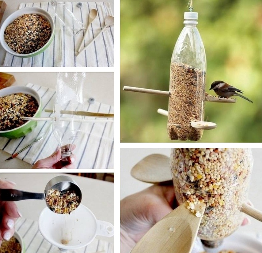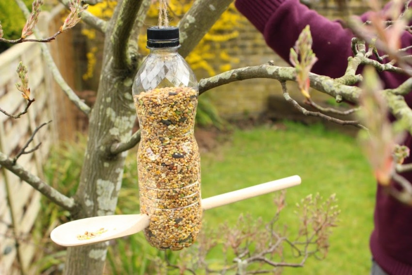 Cara membuat pengumpan botol: reka bentuk termudah dengan sudu