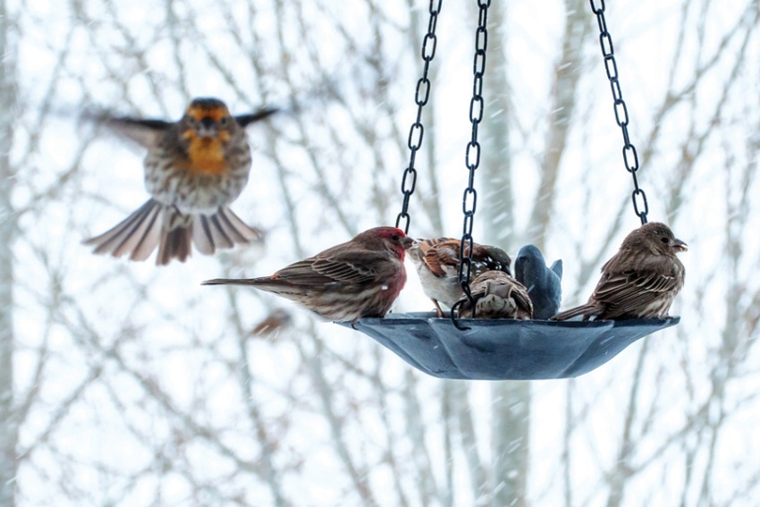 Nasihat berguna! Sebaiknya pasang pengumpan di bawah bumbung agar burung lebih selesa. Kanopi atau gazebo sesuai untuk ini.