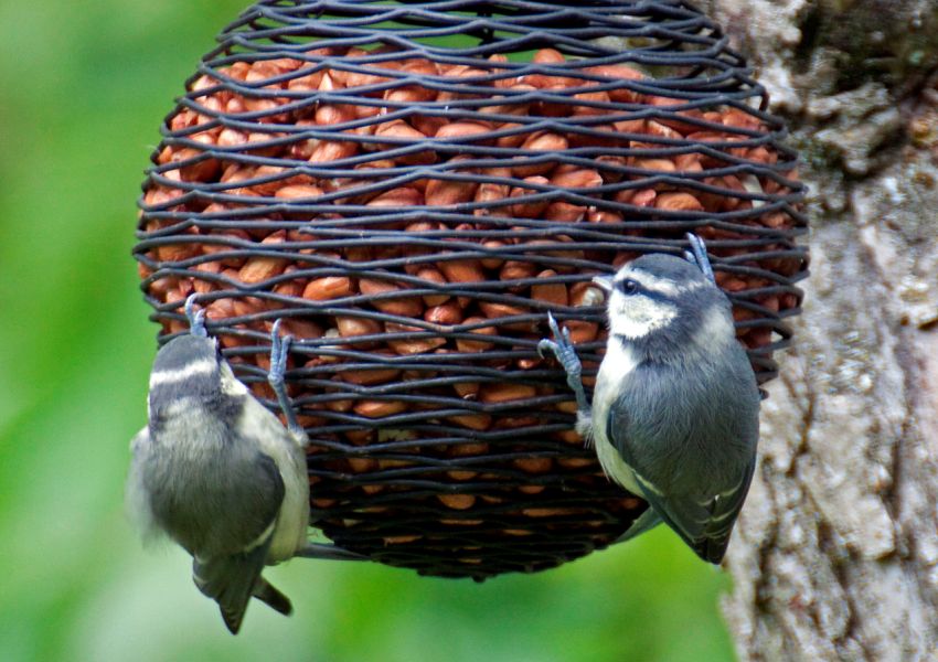 Pengumpan swing akan menjadi pilihan terbaik untuk tit biru. Dalam kes ini, disarankan untuk menggantung bola pada cabang elastik dan nipis sehingga seimbang.