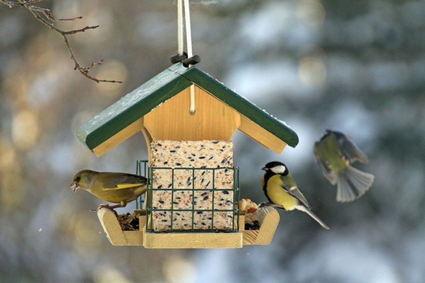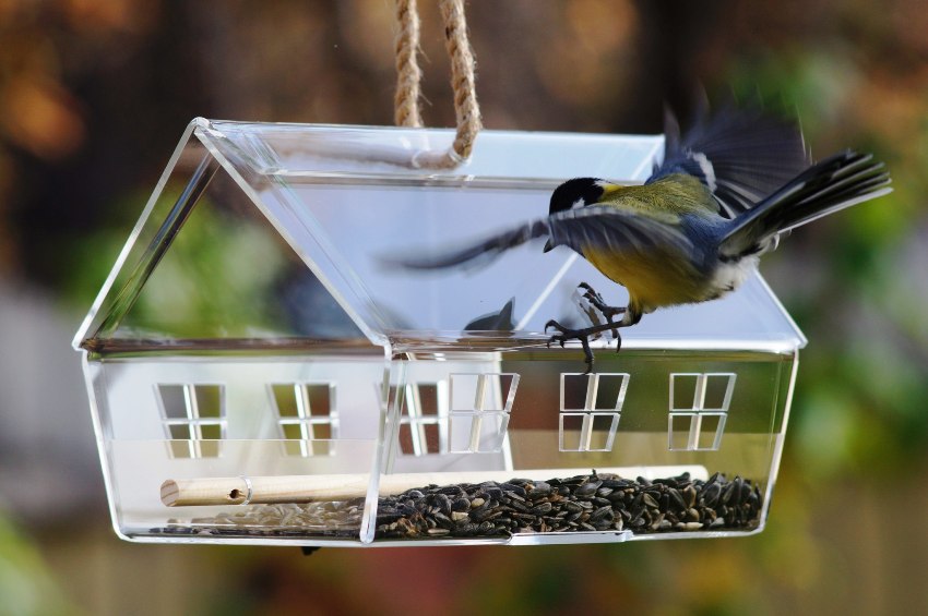 Pengumpan burung DIY: apa yang sepatutnya menjadi reka bentuk