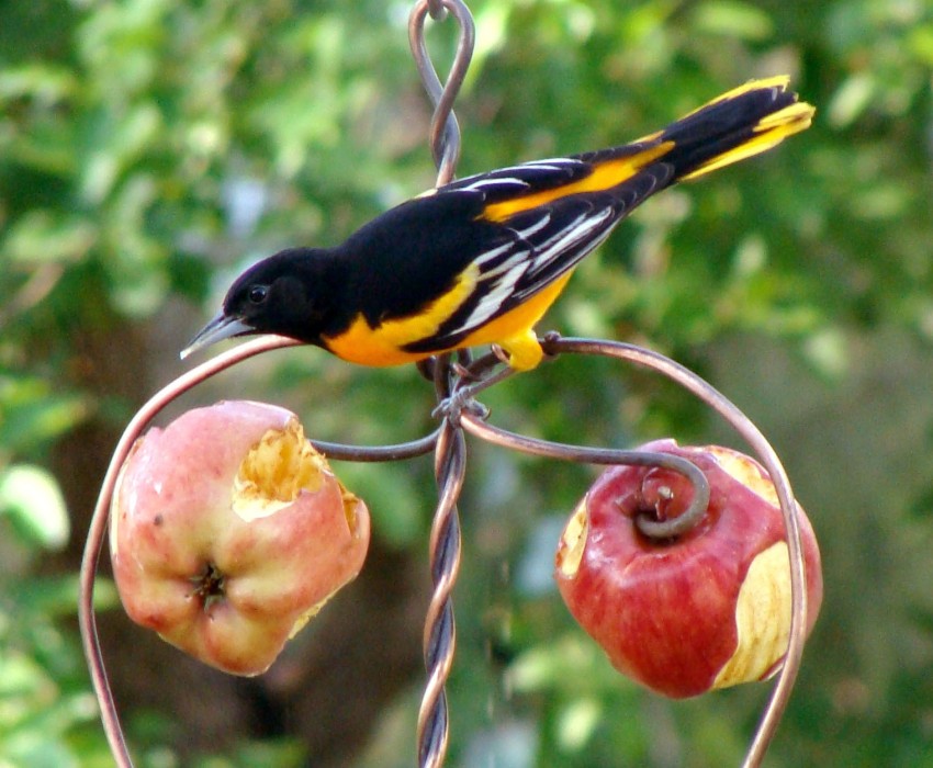 Nasihat berguna! Pada musim sejuk, burung akan mendapat manfaat daripada pengambilan vitamin. Untuk melakukan ini, anda boleh memasukkan batang pengupas pir dan epal dengan biji, beri viburnum, elderberry, abu gunung, bahagian labu berserat dengan biji, pinggul mawar kering, biji anggur. Penggunaan lubang ceri dari kompot adalah dibenarkan.