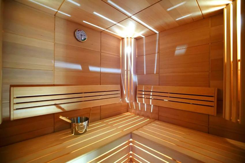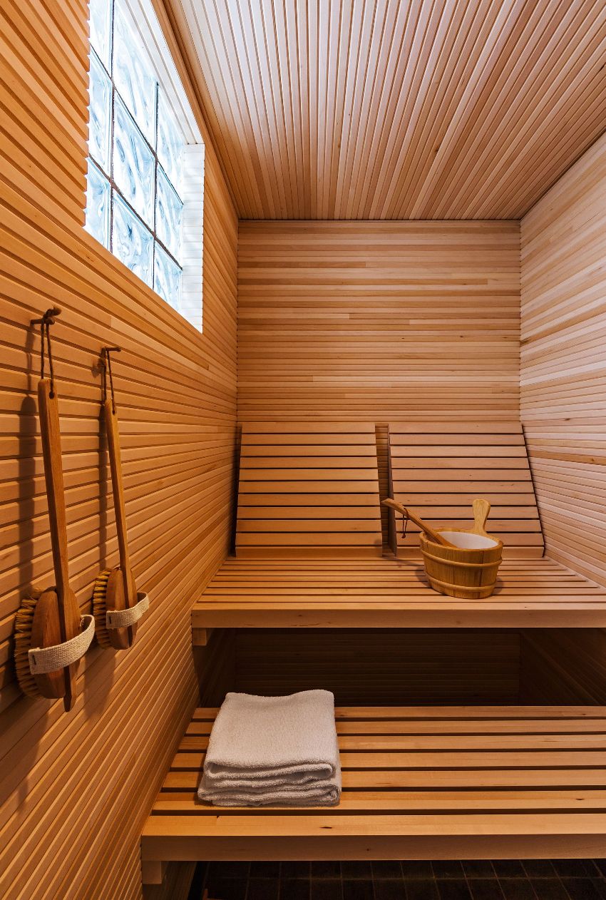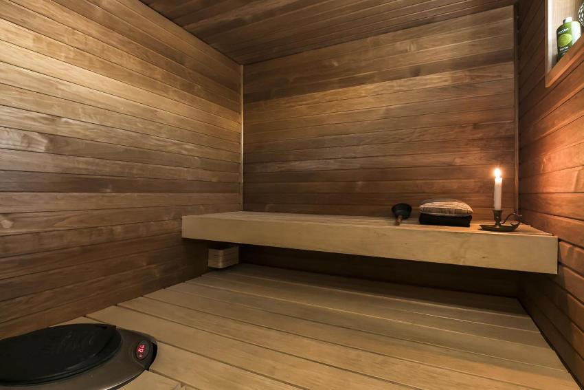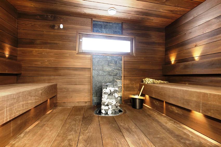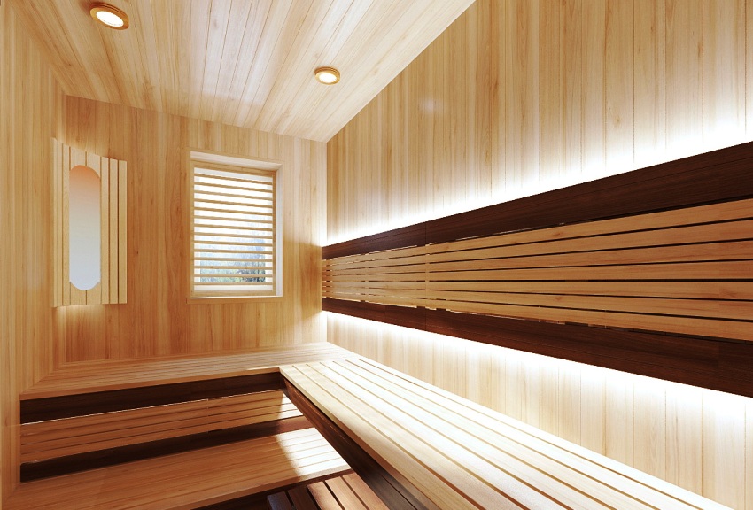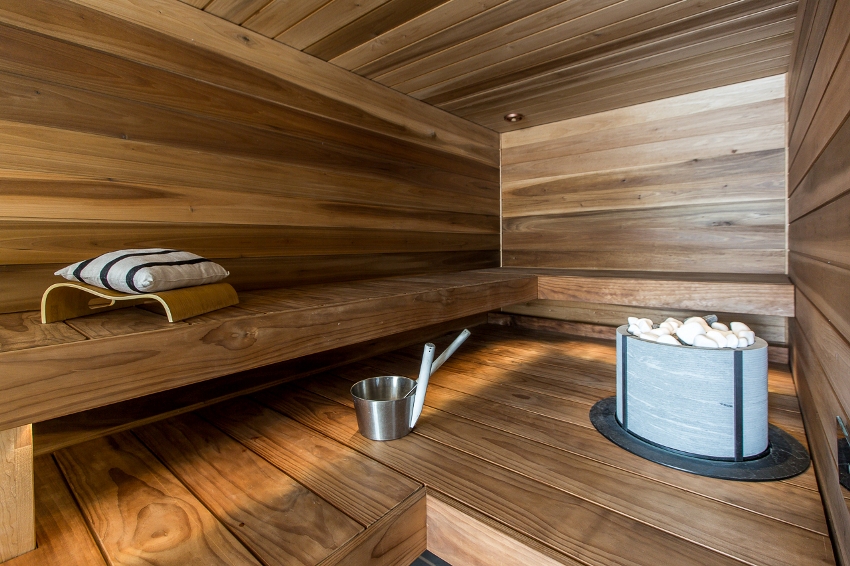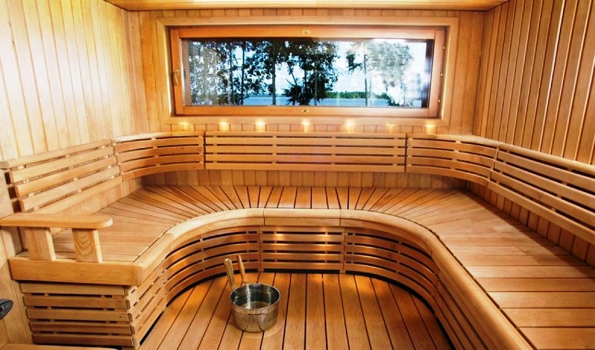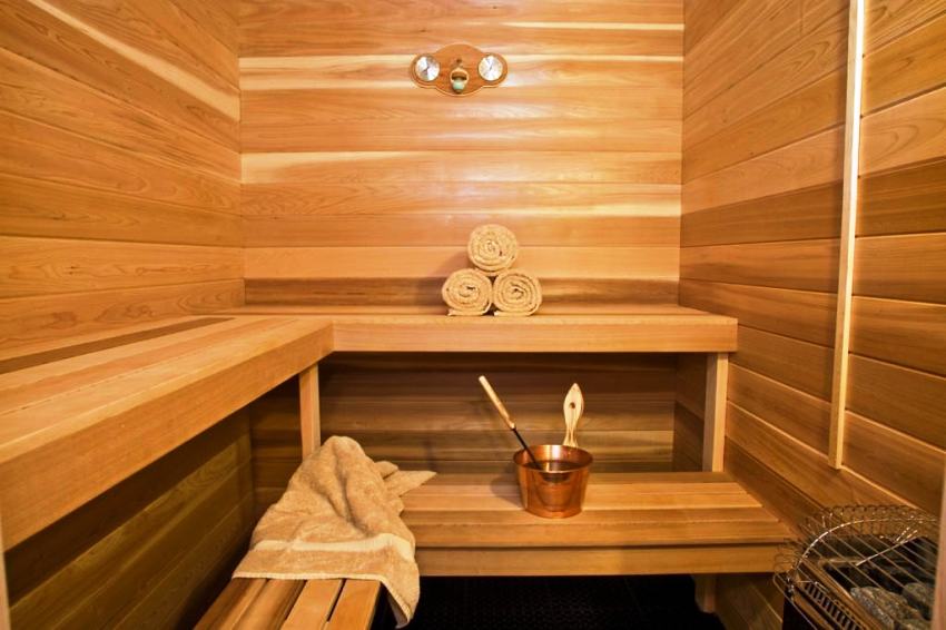 Untuk penamat bilik wap, kayu berkualiti tinggi harus digunakan yang dapat menahan suhu tinggi dan kelembapan yang tinggi.