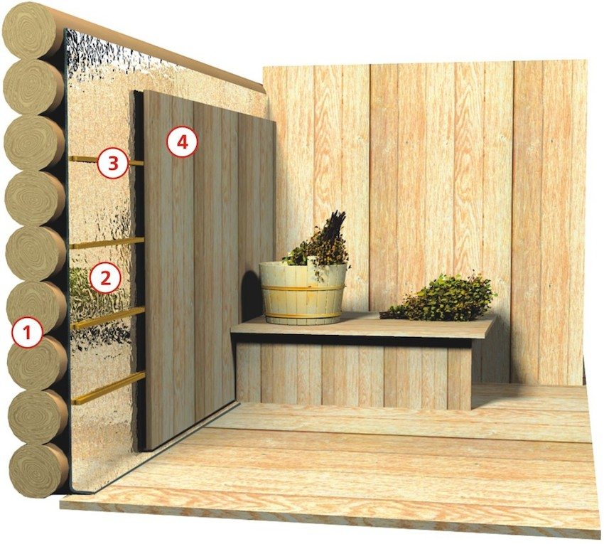 Dekorasi dalaman mandi juga menyiratkan jalan keluar untuk masalah penebat bilik. Kadang kala pakar mengesyorkan menggunakan penebat mineral. Ia sesuai di bawah peti, tetapi dalam hal ini semuanya akan bergantung pada jenis dinding bangunan yang menanggung beban. Sekiranya mandi dibuat dari batu atau batu konkrit, lebih baik dilakukan tanpa penebat, jika tidak, selepas itu anda harus menyelesaikan masalah dengan pengudaraan yang berkualiti rendah.