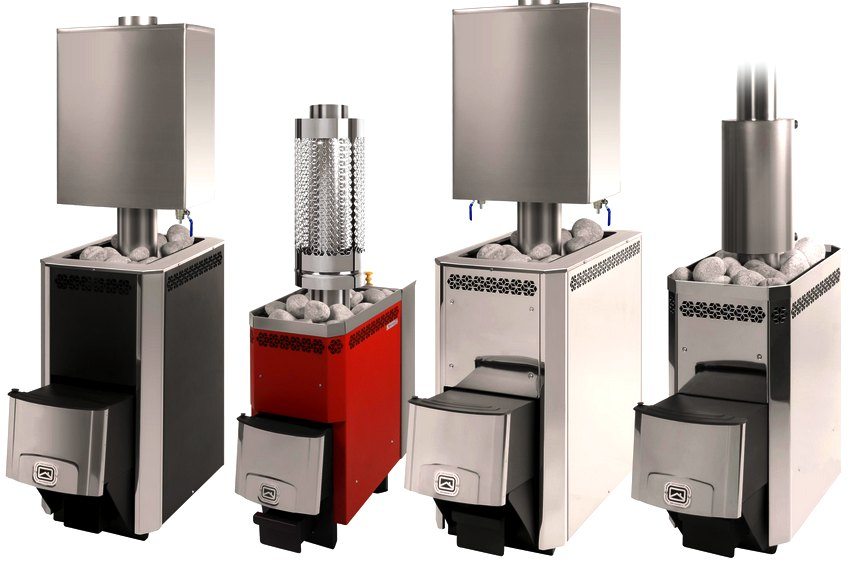 Kompor sauna kayu bakar dengan tangki air generasi moden diperbuat daripada logam, kadang-kadang dari batu bata. Tetapi kedudukan utama diduduki oleh struktur yang diperbuat daripada keluli tahan karat.