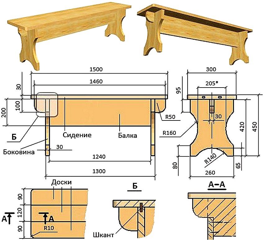 Catatan! Bangku-bangku atau bangku kayu boleh dibuat berdasarkan jenis kayu apa pun. Satu-satunya syarat untuk bahan tersebut ialah bahan mentah mesti dikeringkan dengan baik.