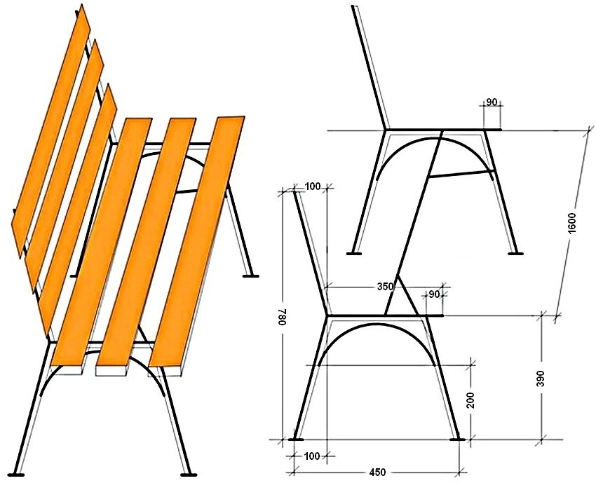 Projek paling mudah melibatkan pembuatan bangku, di mana bahagian pendukungnya terbuat dari logam, dan bahan untuk bahagian belakang dan tempat duduk adalah kayu. Untuk melakukan ini, anda perlu mengimpal dua segi empat tepat atau kotak dari paip profil. Lebih baik jika ia adalah profil persegi.