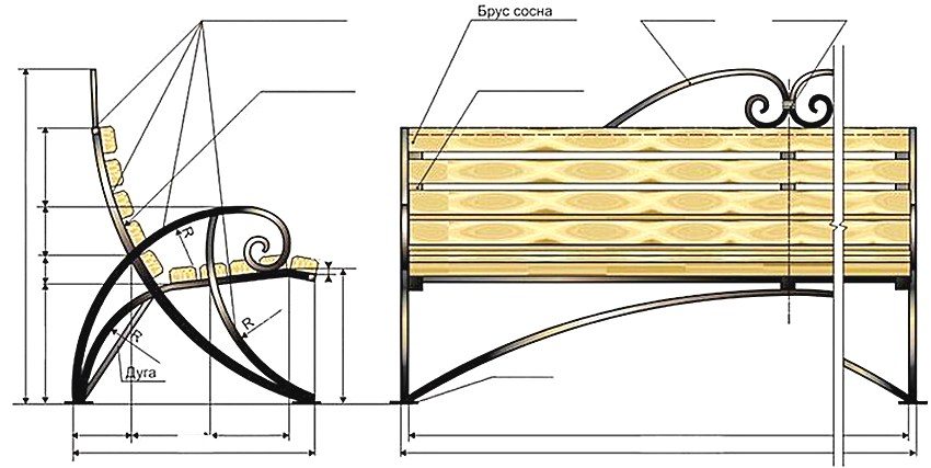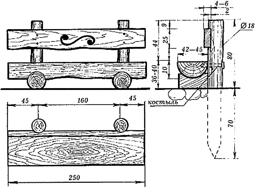 Nasihat berguna! Reka bentuknya agak kasar. Selepas pemasangan, anda boleh mengubahnya: berikan tempat duduk dan sandarkan bentuk yang digambarkan, giling, hiasi produk dengan ukiran.