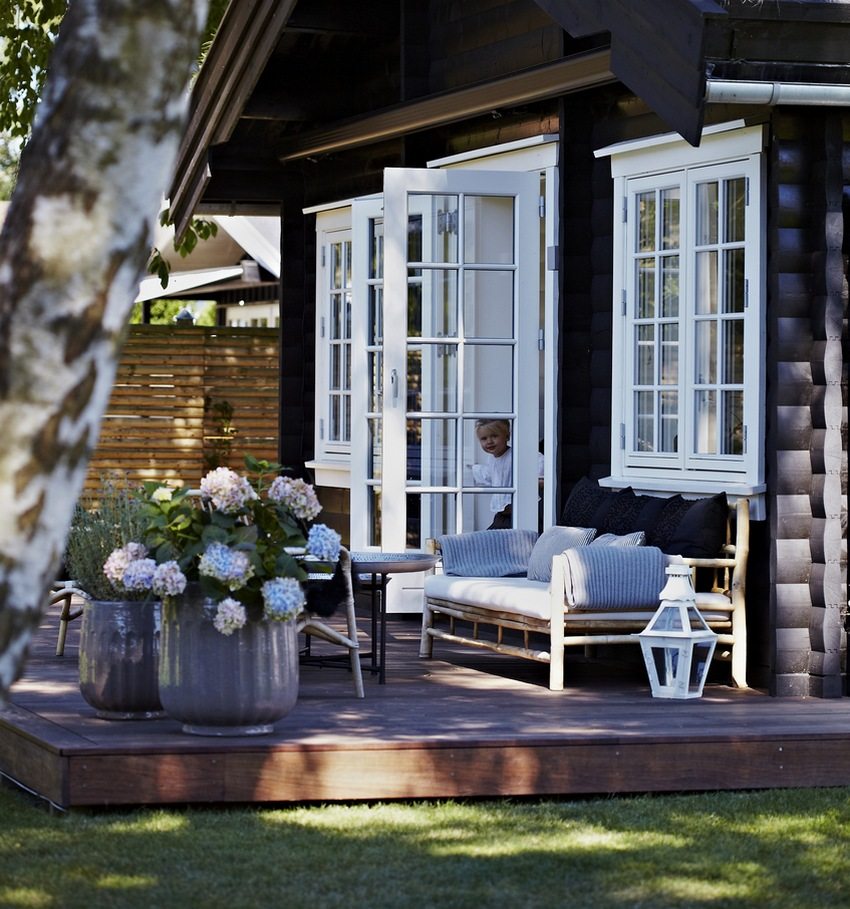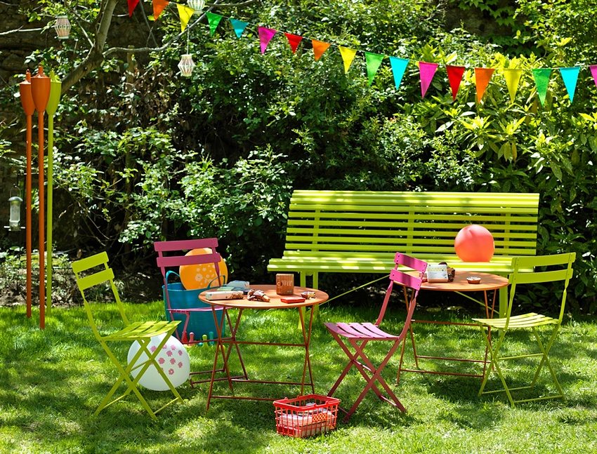 Idea ini dapat digunakan untuk mengatur seluruh teres di halaman atau di atas bumbung pondok yang rata. Buat komposisi perabot anda, yang terdiri daripada meja dan dua bangku besar atau beberapa tempat duduk tunggal.