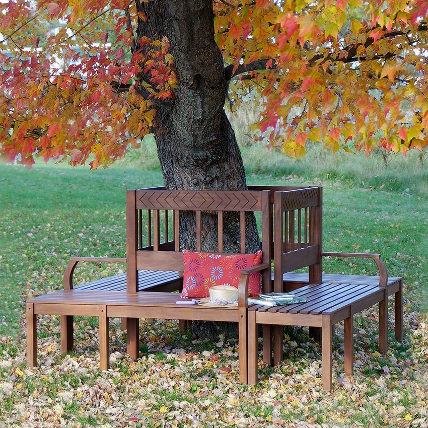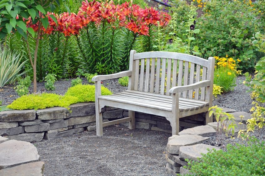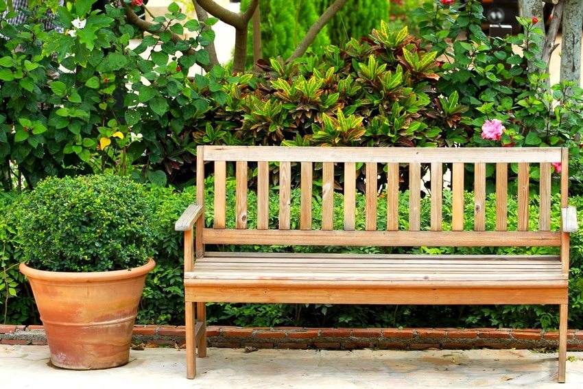 Kayu itu hangat dan menyenangkan untuk disentuh, menjadikannya sesuai untuk bangku dan perabot taman yang lain