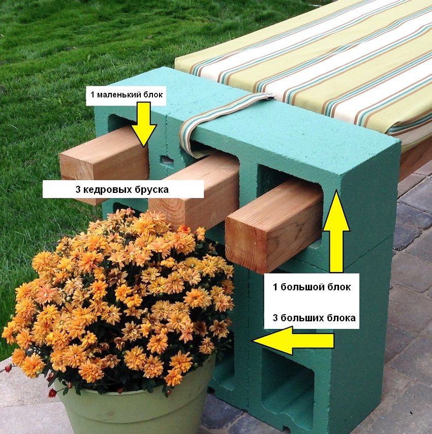 Penyokong papan kayu boleh dibuat lebih tahan lama dan boleh dipercayai dengan menggantinya dengan blok bangunan berongga. Dalam kes ini, bar tempat duduk akan dipasang pada lubang penyokong. Ingatlah untuk melekatkan tepi pada kayu agar lebih selesa untuk duduk.