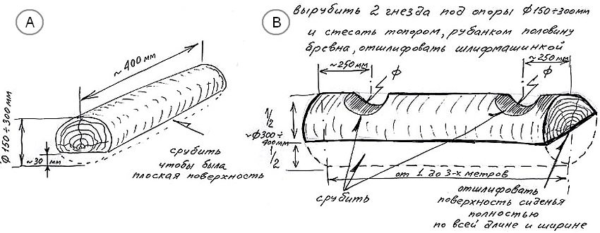 Cadangan untuk membuat bangku simpanan dari log dengan tangan anda sendiri