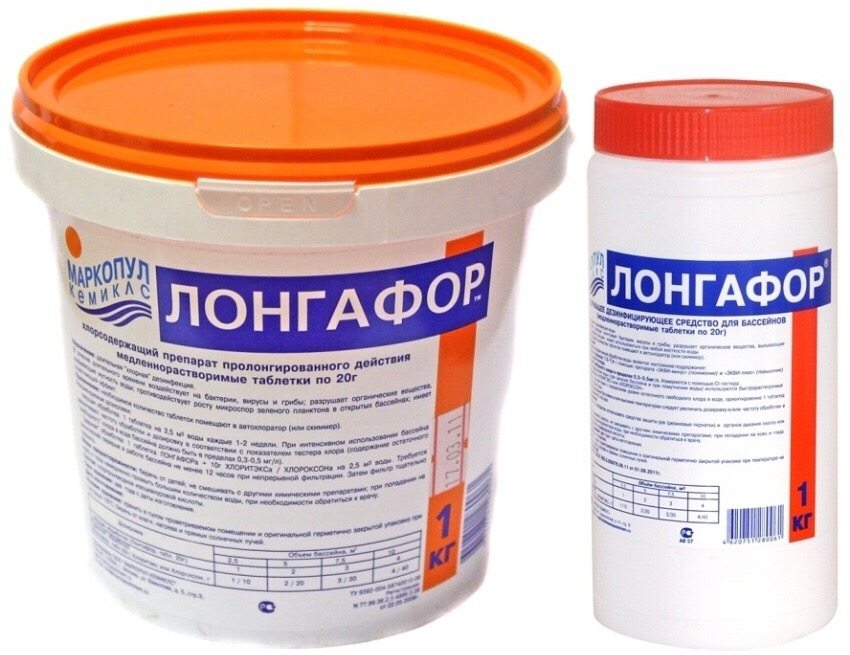 Tablet "Longafor" yang dihasilkan di Rusia cukup berkesan. Dos satu tablet adalah 20 g. Ubat ini larut sepenuhnya dalam air dan segera mula bertindak. Sekiranya, semasa berenang di kolam renang, anda menghidu bau klorin, menjengkelkan kulit dan mata, ini adalah tanda kekurangan bahan aktif. Dalam kes ini, rawatan kejutan dilakukan dan selepas 12 jam dimungkinkan untuk berenang di kolam renang lagi.