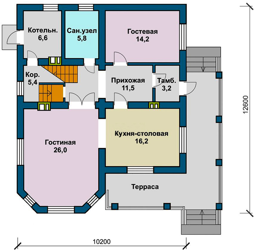 Teres terbuka ke rumah dua (atau lebih) tingkat. Selalunya, terlepas dari jumlah lantai di bangunan utama, terasnya adalah dua tingkat, yang membolehkan akses mudah ke tingkat atas rumah. Selalunya, balok tinggi yang digunakan sebagai penyokong tidak begitu menarik. Untuk mengelakkan kesulitan, ruang di bawah teres digunakan untuk membuat kawasan tambahan.