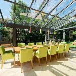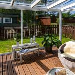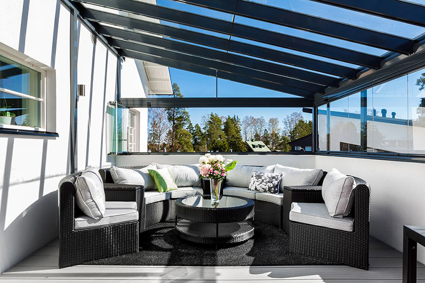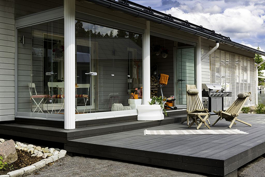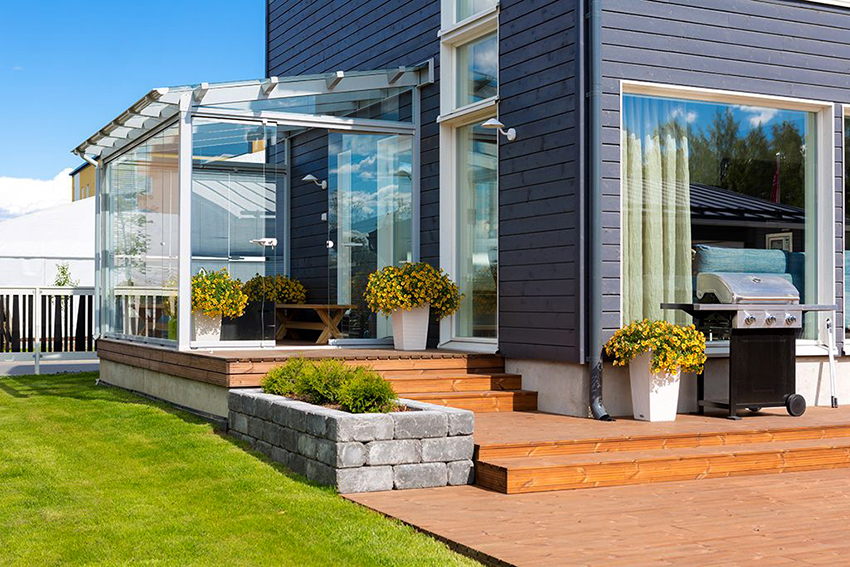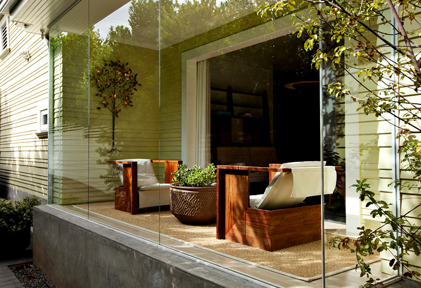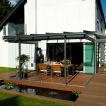 - 4 Reka bentuk teres dan beranda dengan gelongsor kaca yang melekat di rumah