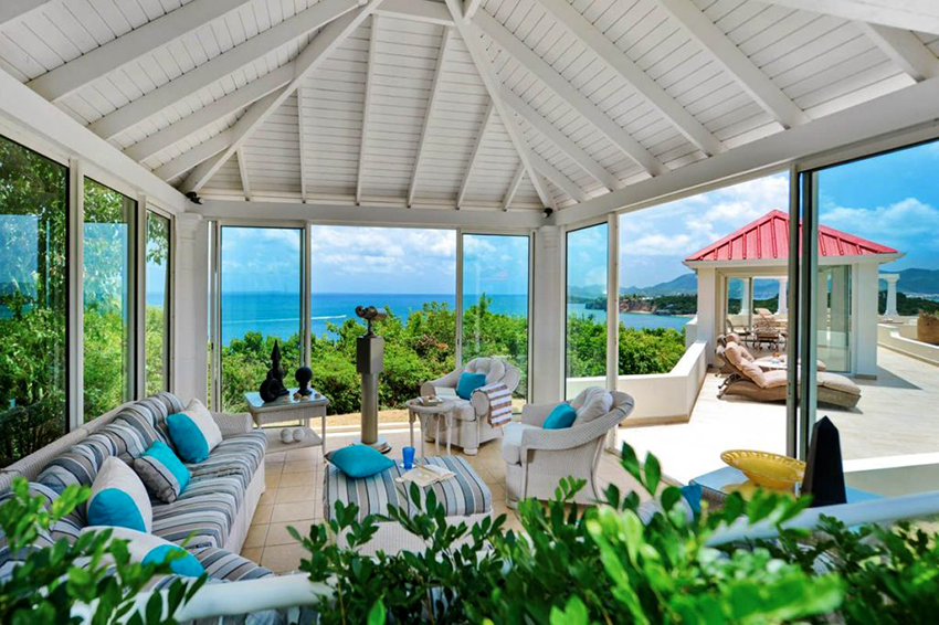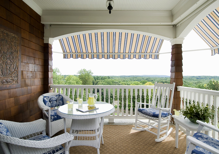 Mediterranean. Sangat sesuai di beranda yang terletak berhampiran laut atau badan air yang lain. Warna utama adalah biru, pirus, hijau, pasir. Sebaiknya pilih anyaman perabot atau dengan pelapis tekstil, dengan cetakan yang sesuai dengan pemandangan laut.