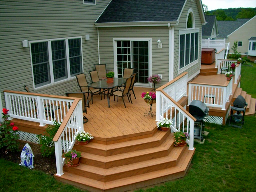 Decking dianggap sebagai salah satu bahan terbaik.Dalam proses pembuatan lantai, tepung kayu dan polimer digunakan untuk mengisi bahan dengan kekuatan yang cukup. Hasilnya adalah lantai yang tidak licin yang menarik. Sangat penting untuk digunakan jika teras kayu terpasang di rumah, kerana secara luaran, dek tidak dapat dibezakan dari bahan semula jadi - hanya dengan sentuhan.
