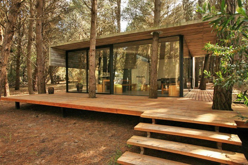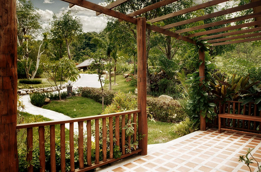 - Penampilan yang menarik. Sambungan kayu selalu kelihatan asli, terutama jika dikelilingi oleh pemandangan hijau.