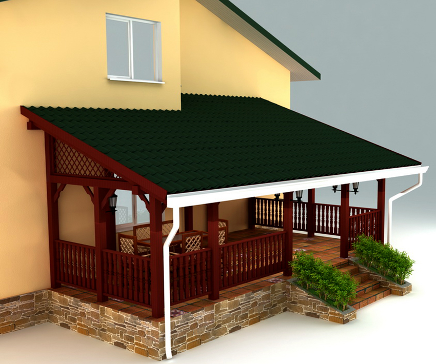 Secara umum, lampiran beranda terbuka yang dibuat ke rumah adalah struktur yang memiliki dinding, kanopi atau beranda yang sama dengan bangunan utama. Struktur sedemikian dicirikan oleh ruang terbuka yang besar, terlindung dari pemendakan dan cahaya matahari. Kerusi berjemur, kerusi berlengan dan kerusi biasanya diletakkan di sini. Untuk mengisi ruangan dengan keselesaan, ia dilengkapi dengan pelbagai jenis tanaman. Adalah sangat penting bahawa untuk memasang teres atau beranda terbuka ke rumah, anda tidak perlu mengupah pakar yang mahal atau menjalankan kerja reka bentuk yang kompleks.