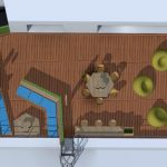 Taman permainan musim panas boleh dibina dan dilampirkan. Premis terbina dalam disediakan di panggung reka bentuk pondok, sesuai dengan seberapa banyak yang mungkin dengan reka bentuk bangunan dan berada di landasan yang sama dengannya. Struktur yang terpasang diikat pada rumah yang ada dan diletakkan di atas landasan yang terpisah.