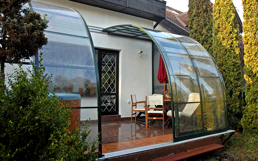 Pilihan utama untuk teras polikarbonat yang melekat di rumah