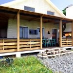 Adalah wajar untuk memperuntukkan tempat untuk mengatur barbeku dan, mungkin, bahkan bar mini. Beranda sedemikian mestilah seluas 20 m² atau lebih, lebih baik jika panjang salah satu dindingnya sekitar 5 m.