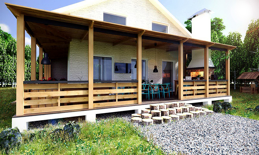 Selalunya, semasa membina beranda ke rumah, gabungan pelbagai bahan juga digunakan, seperti bata, kaca, logam atau batu. Semasa memilih, anda perlu mengambil kira bukan sahaja kos, tetapi juga ketersediaan bahan berhampiran tapak pembinaan. Sekiranya tidak ada tempat di laman web ini untuk menempatkan semua bangunan yang diinginkan, disarankan untuk menggabungkannya antara satu sama lain, misalnya, untuk menghubungkan rumah mandi atau dapur musim panas ke beranda terbuka. Bagaimana cara memasang beranda ke rumah dengan tangan anda sendiri? Mari pertimbangkan pilihan yang paling biasa.