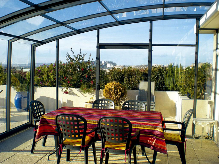 Secara umum, kemunculan teknologi bangunan dalam bentuk mekanisme gelongsor atau yang boleh ditanggalkan memungkinkan untuk mengubah teres terbuka biasa yang dipasang di rumah menjadi premis penuh.Sistem ini mengubah bangunan standard menjadi bangunan multifungsi, misalnya, apabila semua tingkap diluas sepenuhnya, beranda menjadi terbuka sepenuhnya, dan jika perlu atau dalam cuaca buruk, elemen dapat dipindahkan dengan mudah ke tempatnya dan terlindung dari hujan atau angin.