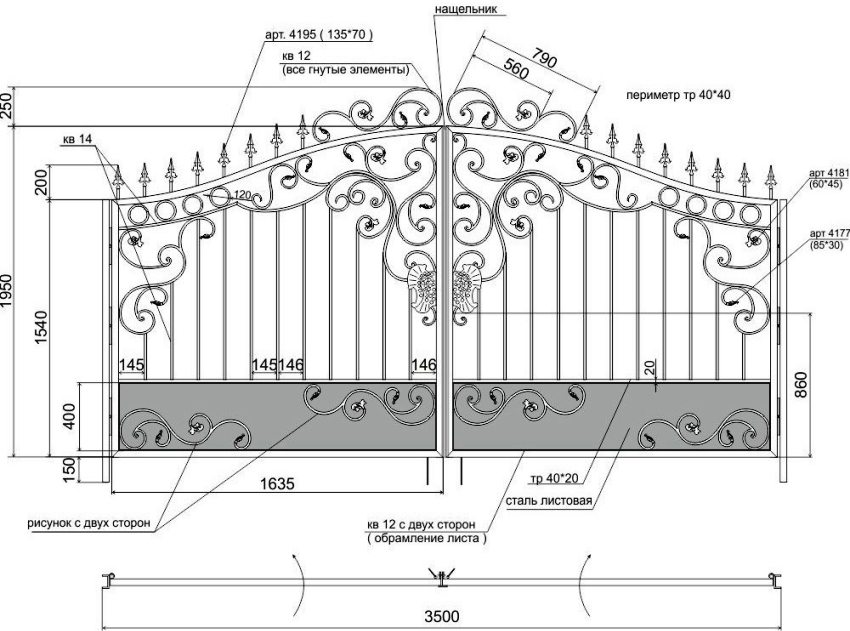 Selempang palsu juga kelihatan bagus, tetapi yang terbaik adalah mempercayakan ciptaan mereka kepada tuan kerana kerumitan proses seperti itu. Tanpa kemahiran khas, mustahil untuk memasang gerbang seperti itu dengan tangan anda sendiri. Lukisan, foto dan video untuk memudahkan pemasangan sendiri jenis pintu lain boleh didapati di bawah.