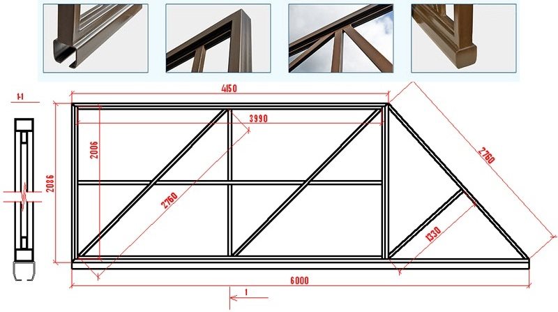 Kepak itu sendiri diperbuat daripada paip dengan penampang persegi, tetapi berukuran lebih kecil. Dimensi yang disyorkan 40x25x3000 mm. Dengan kaedah pengelasan, bingkai selempang dibuat dalam bentuk bingkai konvensional dan kemudian diperkuat dengan palang atau pepenjuru dari bahan yang sama. Sangat mustahak untuk memberi ruang pada pintu untuk bolt, kunci dan hentian pembukaan-penutup.
