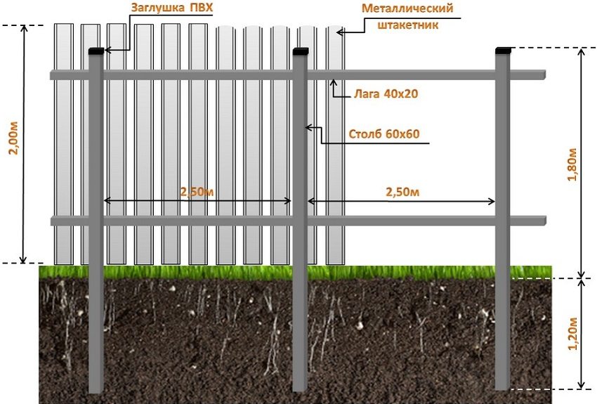 Nasihat berguna! Semakin panjang rentang dan semakin tinggi pagar, semakin besar keratan rentas tiang logam digunakan untuk membina penyangga.