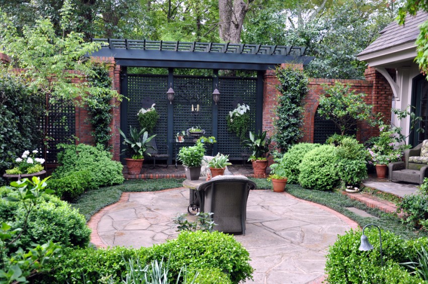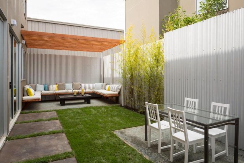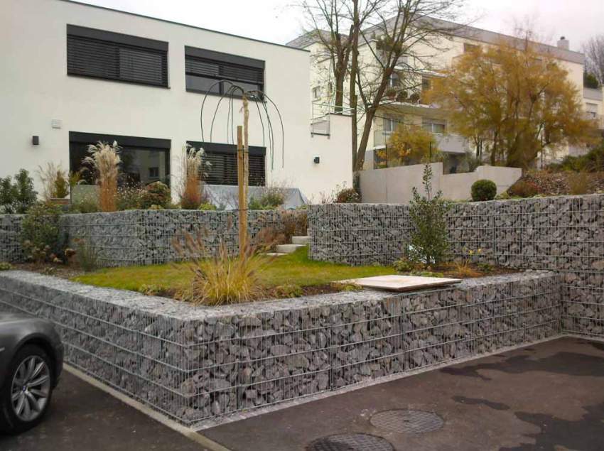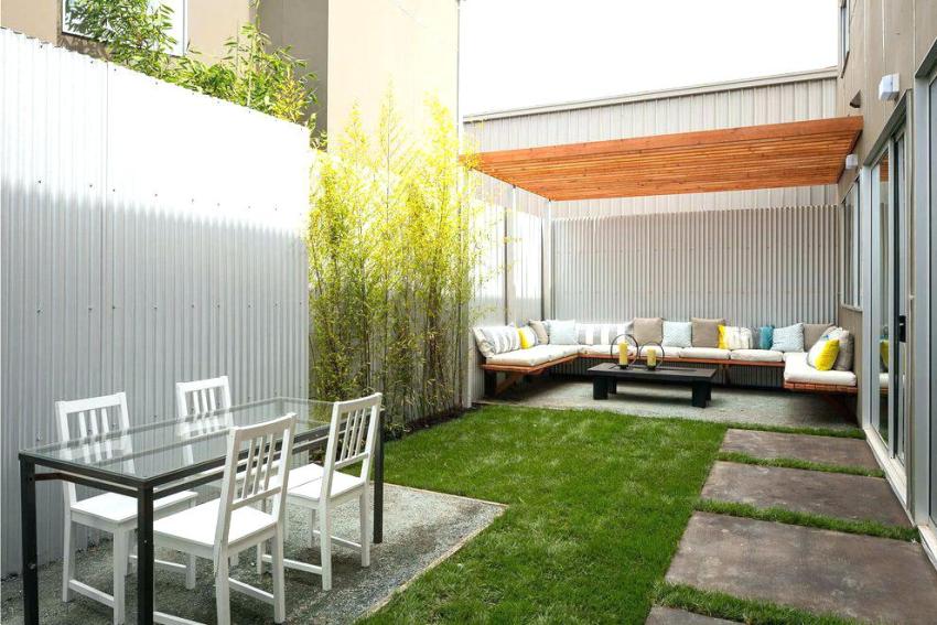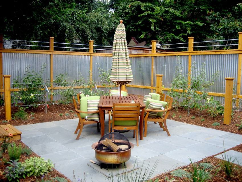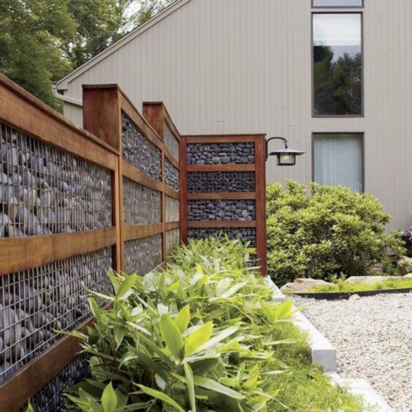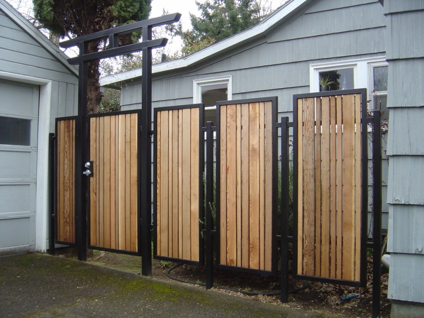Selalunya, gabungan permukaan kosong dan kawasan dengan jurang digunakan di pagar. Bahagian bawah dibuat padat, dan bahagian atasnya mudah dicapai untuk dilihat. Dengan teknik ini, wilayah ini hampir tidak dapat dilihat dan pada masa yang sama tidak ada kesan ruang tertutup.