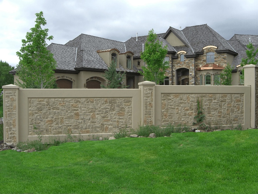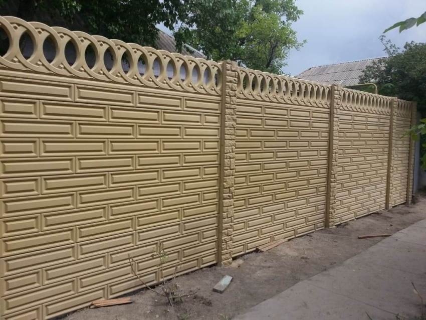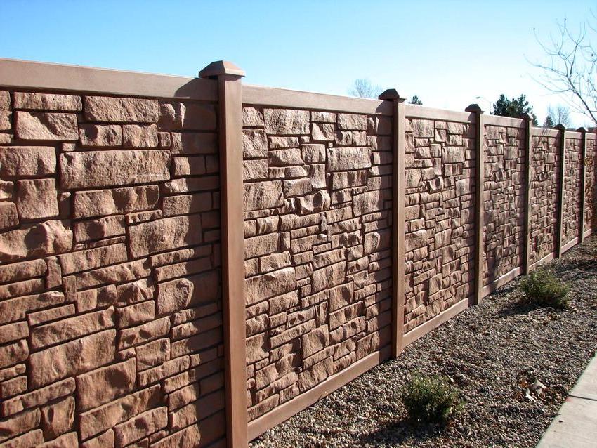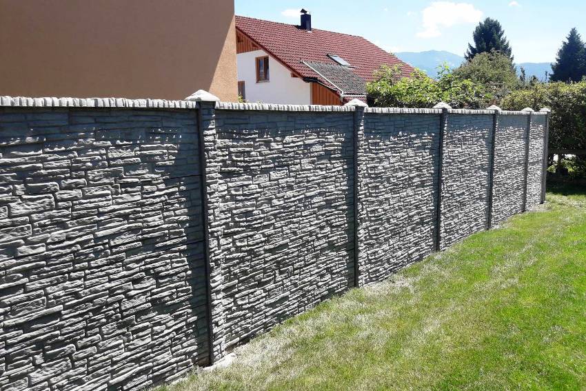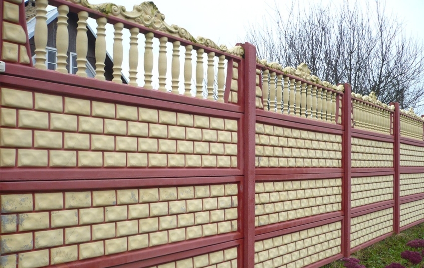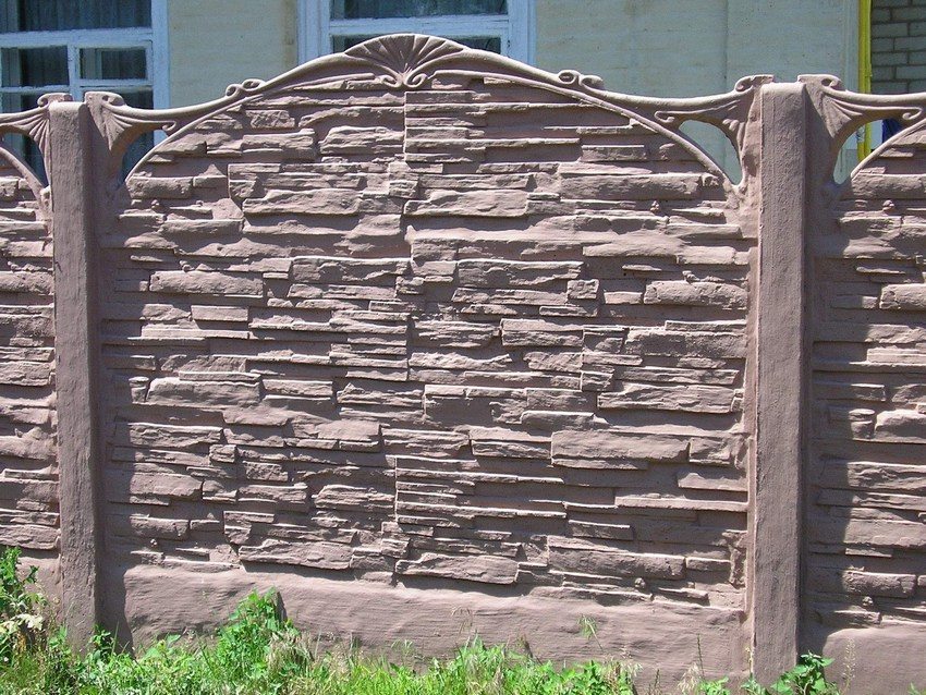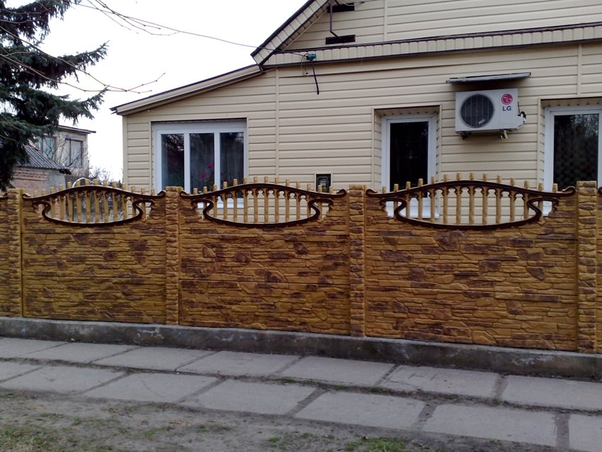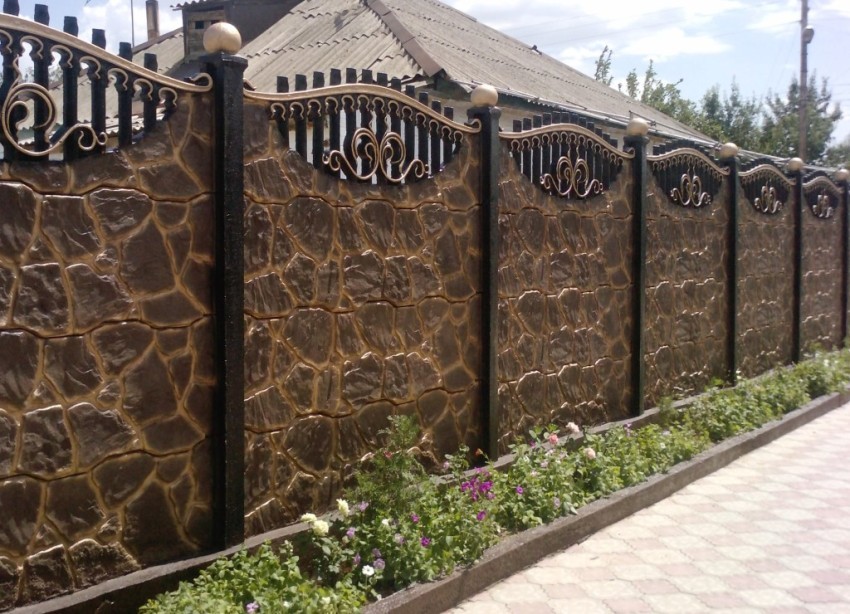 Selalunya dalam reka bentuk pagar, parapet konkrit digunakan, yang juga berhadapan dengan batu semula jadi atau buatan. Papan beralun dalam reka bentuk ini akan bertahan lebih lama.
