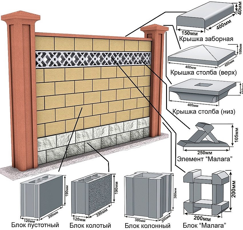 Bagi mereka yang lebih suka memasang pagar sendiri, akan menguntungkan untuk membeli blok konkrit siap pagar. Blok konkrit dibuat berongga, yang sangat memudahkan proses pembinaan dan membolehkan anda bersembunyi di dalam komunikasi atau pendawaian elektrik untuk pencahayaan perimeter.