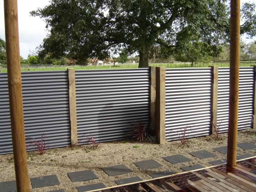 Terdapat banyak pilihan untuk membina pagar yang diperbuat daripada papan beralun. Ia boleh dipasang dengan kanvas berterusan yang dipasang pada tiang tegak, atau digabungkan dengan bahan lain.