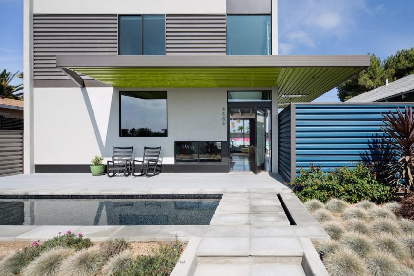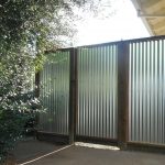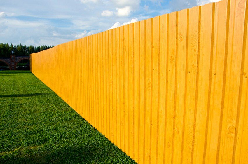 Warna pepejal biasa pagar dari papan beralun di sekitar wilayah rumah persendirian