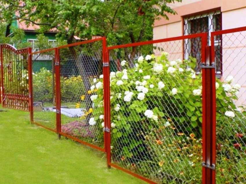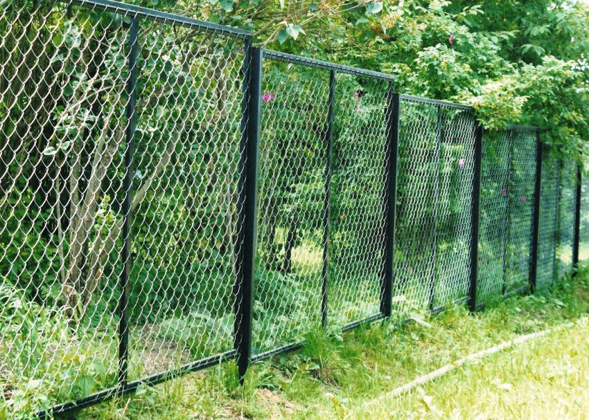 Anda boleh memberikan pagar yang lebih kemas dan rapi jika anda membentuknya dari kerangka pada bingkai logam, di mana jala diregangkan. Bingkai dikimpal dari sudut logam atau paip profil. Reka bentuk ini lebih tahan lama dan menyenangkan secara estetik. Kadang-kadang, untuk memberi pagar pemandangan yang indah, bahagiannya dicat dengan pelbagai warna terang.