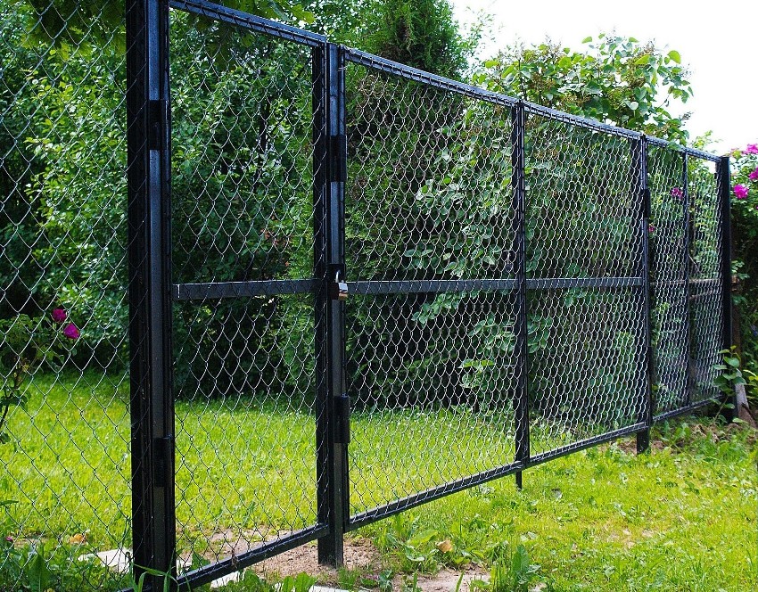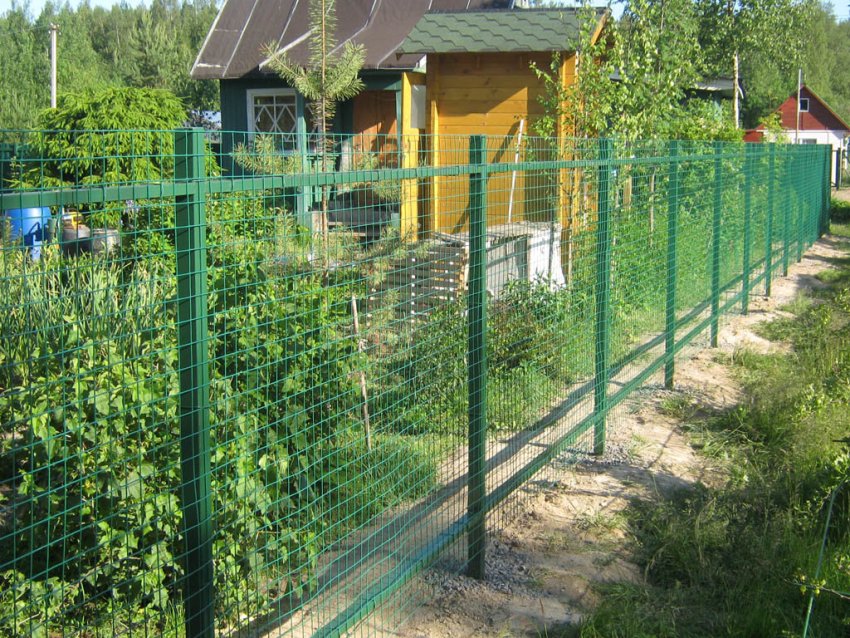 Pagar mesh dikimpal tidak kurang popular. Foto pagar seperti itu menunjukkan kesesuaian penggunaannya. Mereka dipasang dengan penuh semangat untuk memagari kawasan persendirian dan awam. Grid juga mudah digunakan ketika menghias wilayah di halaman: anda dapat memisahkan kawasan laluan dari tempat tidur, membingkai taman bunga atau memagar halaman unggas.
