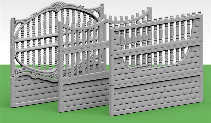 Satu set elemen konkrit yang lengkap boleh dibeli untuk seluruh kawasan. Ini termasuk blok tiang dan rentang, penutup pagar, penutup tiang atas dan bawah, tiang hiasan dan komponen lain.
