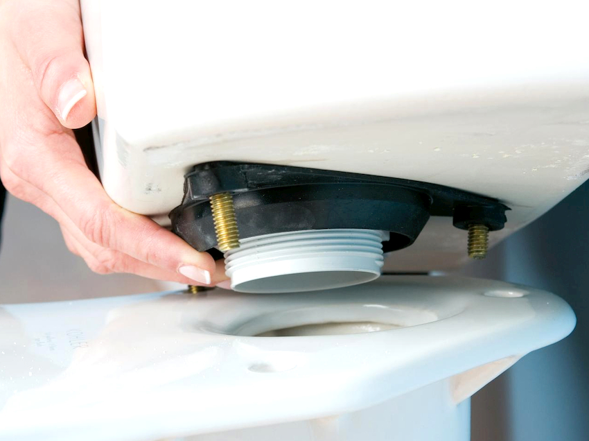Semasa memilih mangkuk tandas padat dengan tangki, elemennya terpasang dengan selamat. Untuk melakukan ini, gunakan baut yang disertakan dalam kit. Gasket getah dipasang di sendi. Semua saluran masuk, saluran keluar dan selang harus diketatkan hingga berhenti, yang akan memastikan meterai yang boleh dipercayai.