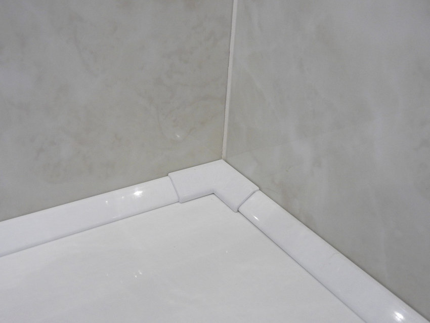 Anda perlu memasang jalan plastik setelah jurang antara dinding dan bilik mandi ditutup dengan sealant. Ini dianjurkan untuk mengelakkan air mengalir di bawah mangkuk sekiranya terkelupas. Pilihan yang paling biasa adalah sudut sempadan PVC untuk bilik mandi, kerana produk ini mempunyai beberapa kelebihan, termasuk: